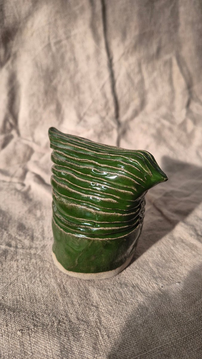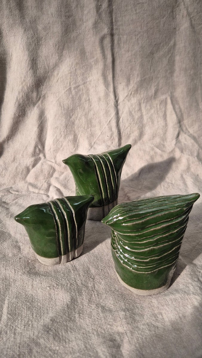 Taidekeramiikkateos vihreä lintu, 9x 11cm